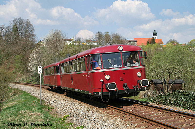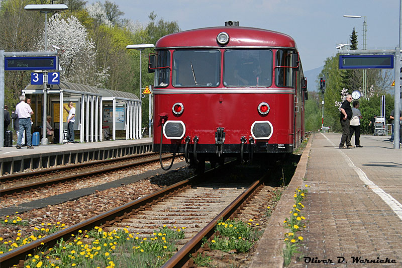 Die Passauer Eisenbahnfreunde befuhren mit einer zweiteiligen Schienenbusgarnitur am 13.04.2009 von Passau kommend die Waldbahn und ab Gotteszell dann die Regentalbahn nach Viechtach. Für eine aufwendige Fototour fehlte leider die Zeit ...